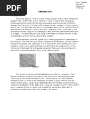 6 1 the classic baking soda and vinegar acid base reaction produces unstable carbonic acid that rapidly decomposes into water and carbon dioxide which escapes as a gas. The american journal of physics is a publication of the american association of physics teachers aapt. The diet coke and mentos reaction is a fun demonstration in chemistry and physics classes of many important concepts in thermodynamics fluid dynamics surface science and the physics of explosions.